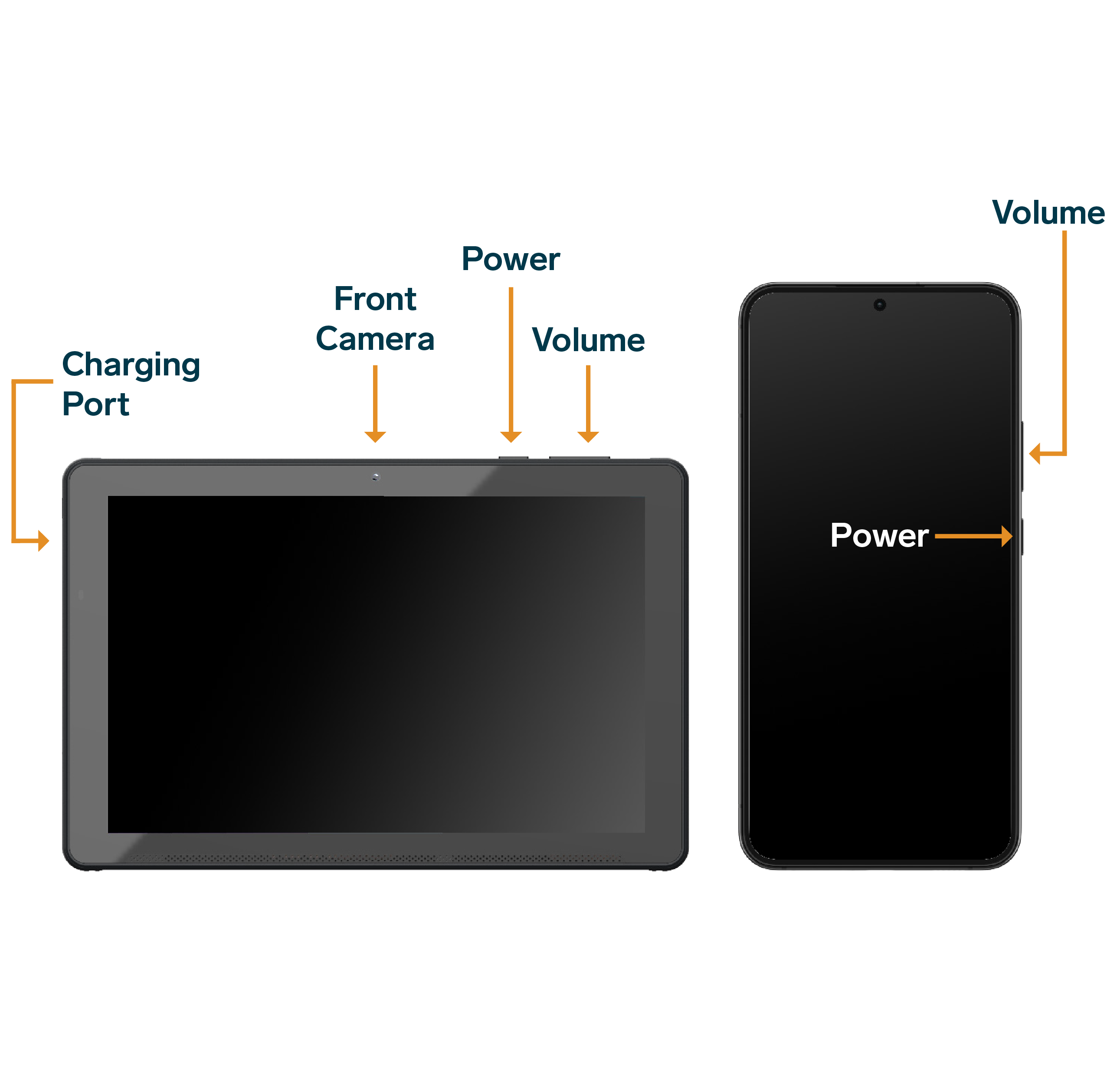 If the device is not charged, take the power cord out of the kit and insert the charging cable into the charging port of the device, and connect the cord to a power source.